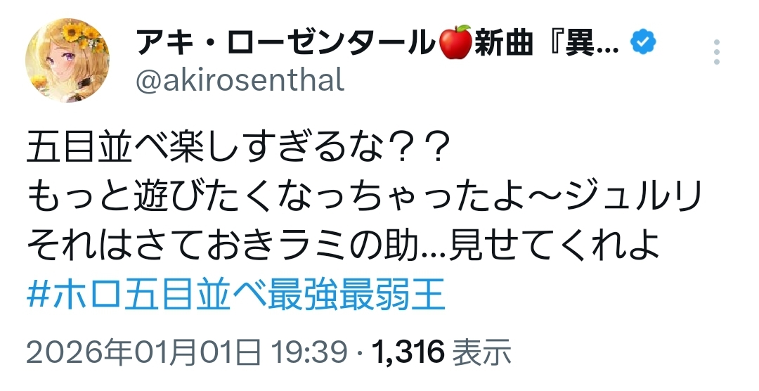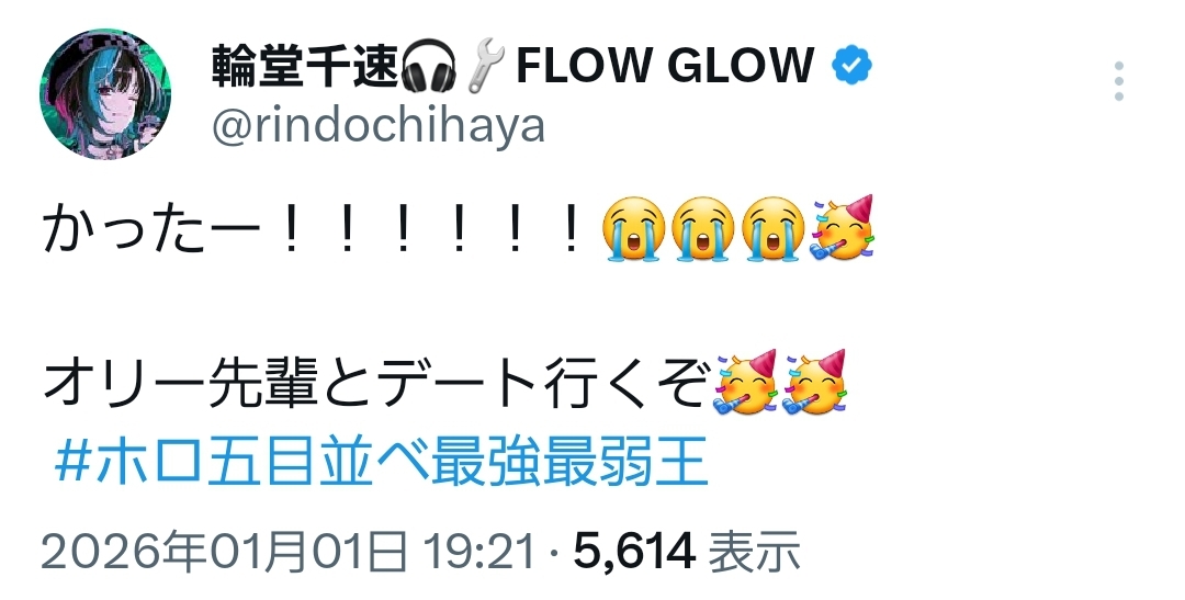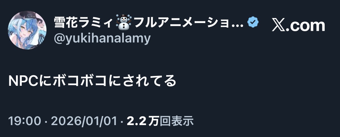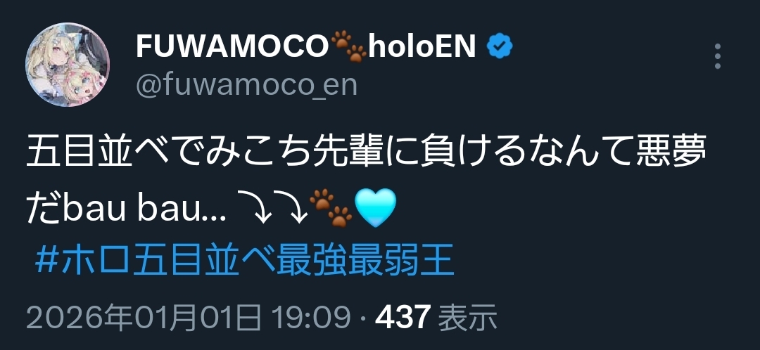 | … | 942無題Name名無し 26/01/01(木)19:59:03 IP:60.89.*(bbtec.net)No.11284356+>これ勝てるホロメンおるんやろか |