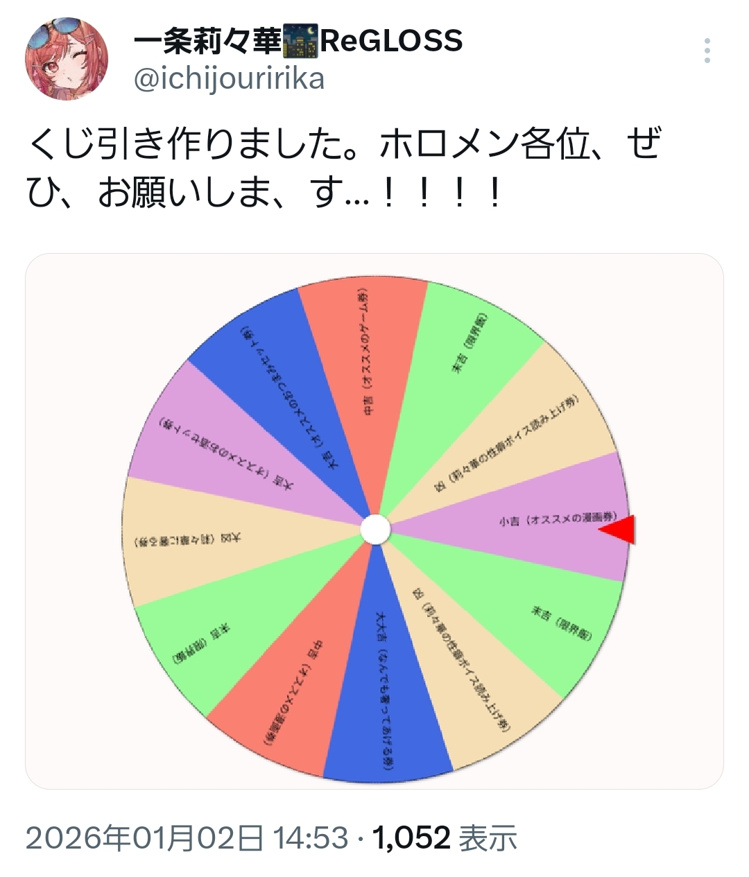 | … | 941無題Name名無し 26/01/02(金)15:33:20 IP:60.89.*(bbtec.net)No.11293631+このルーレットも今用意したのすごいな |