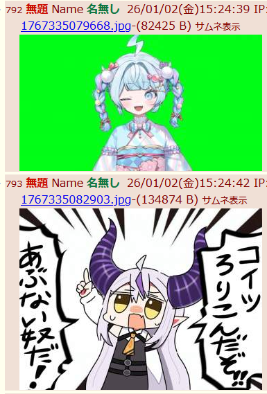 | … | 910無題Name名無し 26/01/02(金)15:31:52 IP:124.143.*(home.ne.jp)No.11293600+>1767335357727.png |