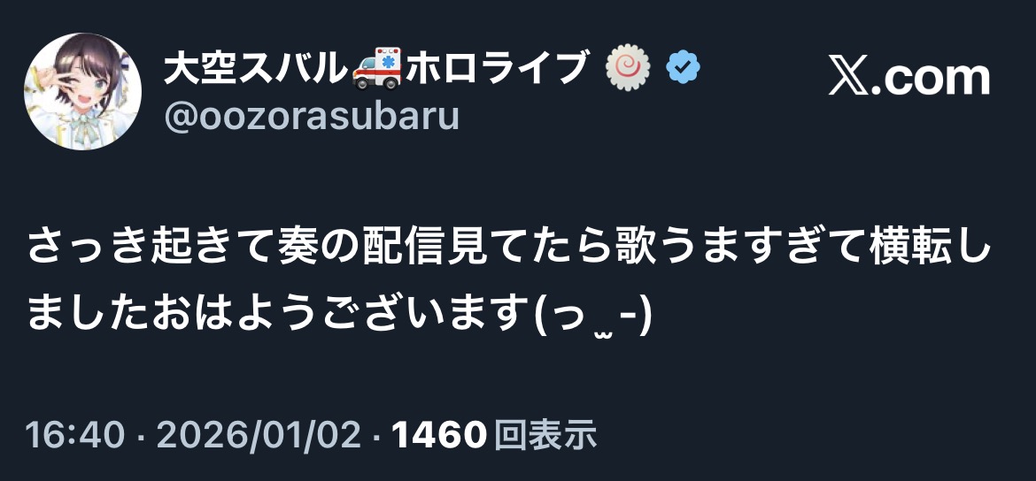 | … | 88無題Name名無し 26/01/02(金)16:30:35 IP:133.32.*(vectant.ne.jp)No.11294794+歌枠2連か |