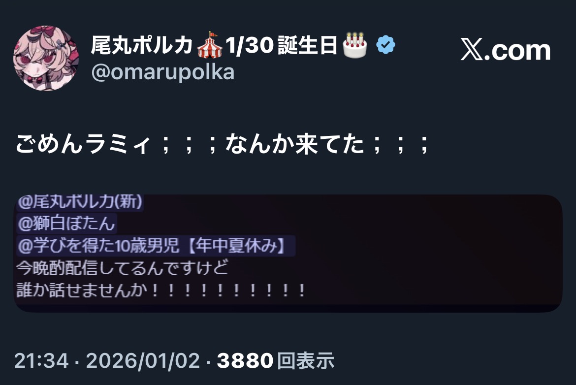 | … | 965無題Name名無し 26/01/02(金)22:21:26 IP:123.1.*(commufa.jp)No.11300798+まずいミオしゃが裏切りにウキウキしてる |