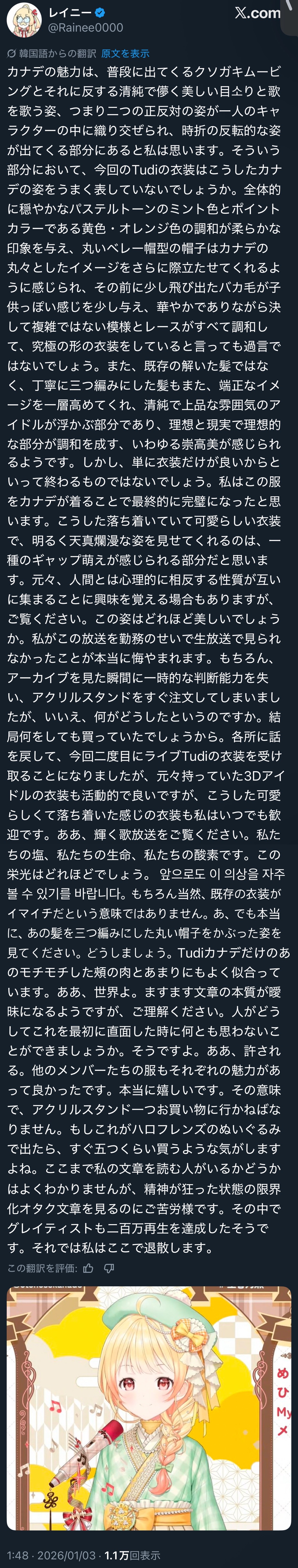 | … | 89無題Name名無し 26/01/03(土)01:59:50 IP:126.62.*(bbtec.net)No.11305965+ミオしゃかフブさんに泣きながら書かされてそう |