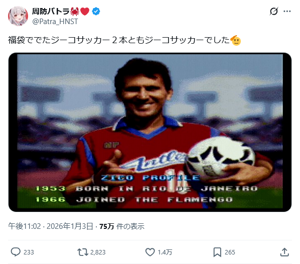 | … | 56無題Name名無し 26/01/05(月)20:50:29 IP:180.35.*(ocn.ne.jp)No.11330761+ジーコサッカーのエロゲーって |