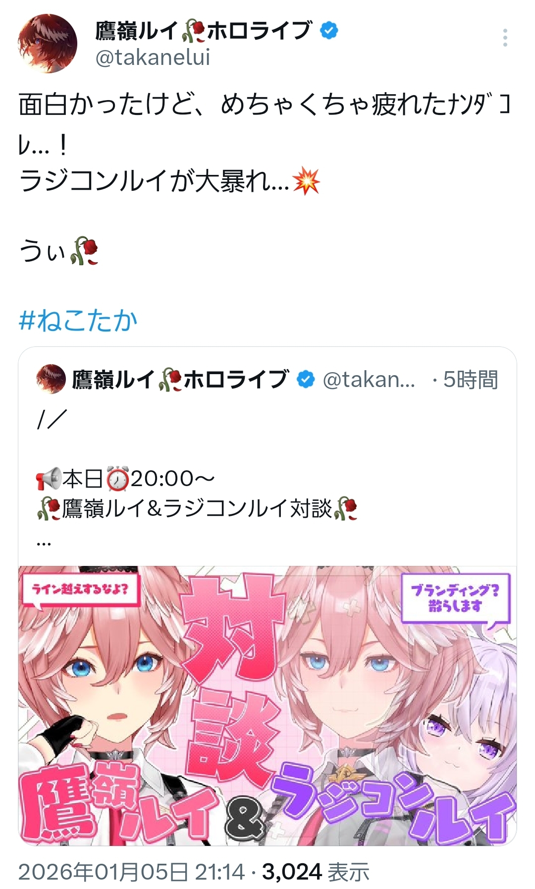 | … | 41無題Name名無し 26/01/05(月)20:49:39 IP:121.86.*(eonet.ne.jp)No.11330745+ルイ姉はフブさんと一番喋ったのか |