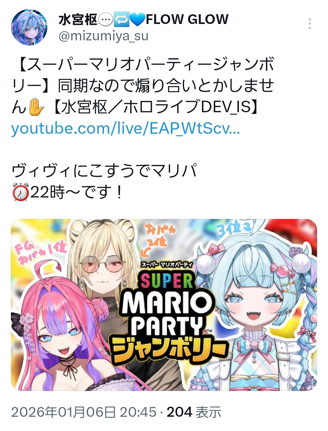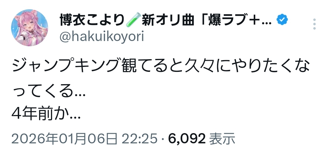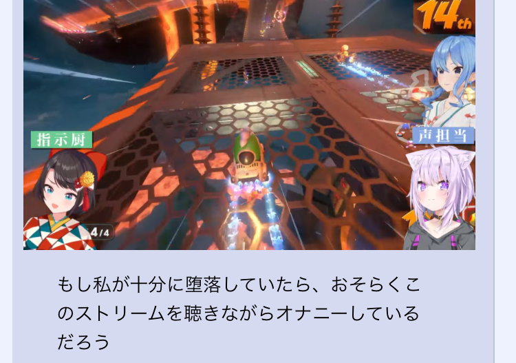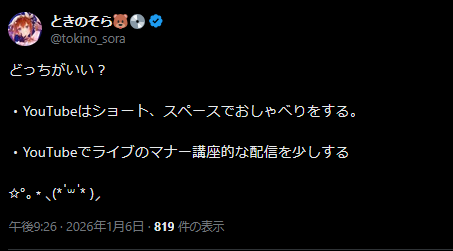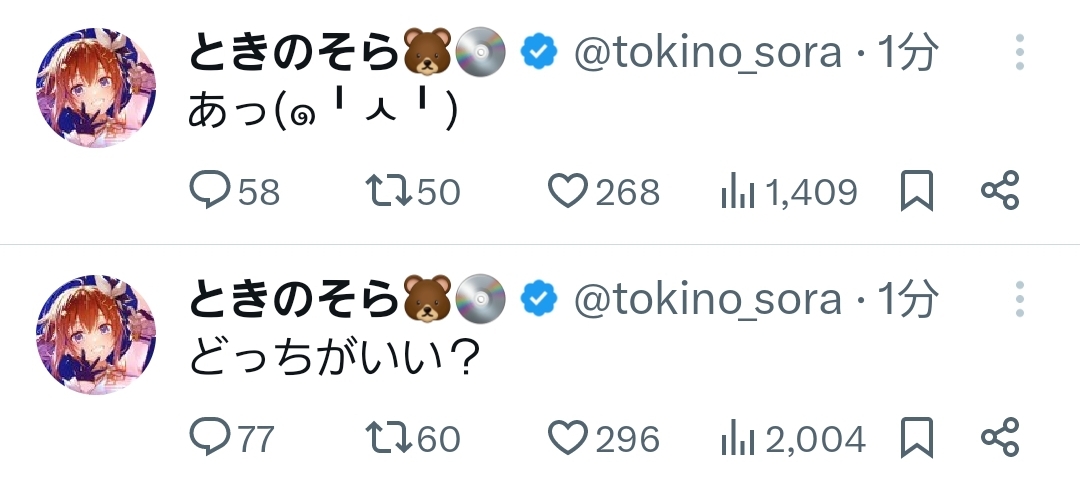 | … | 16無題Name名無し 26/01/06(火)20:40:02 IP:211.132.*(pikara.ne.jp)No.11336038+絶対にすいちゃんを逃さんってスバルの強い意志を感じる… |