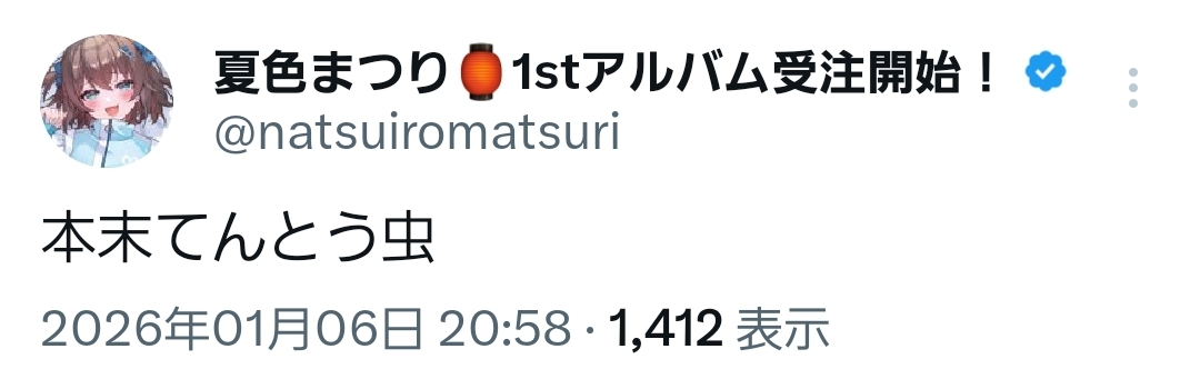 | … | 5無題Name名無し 26/01/06(火)20:39:31 IP:202.7.*(megaegg.ne.jp)No.11336026+にゃんらぶスイートすいせいチャンネル |