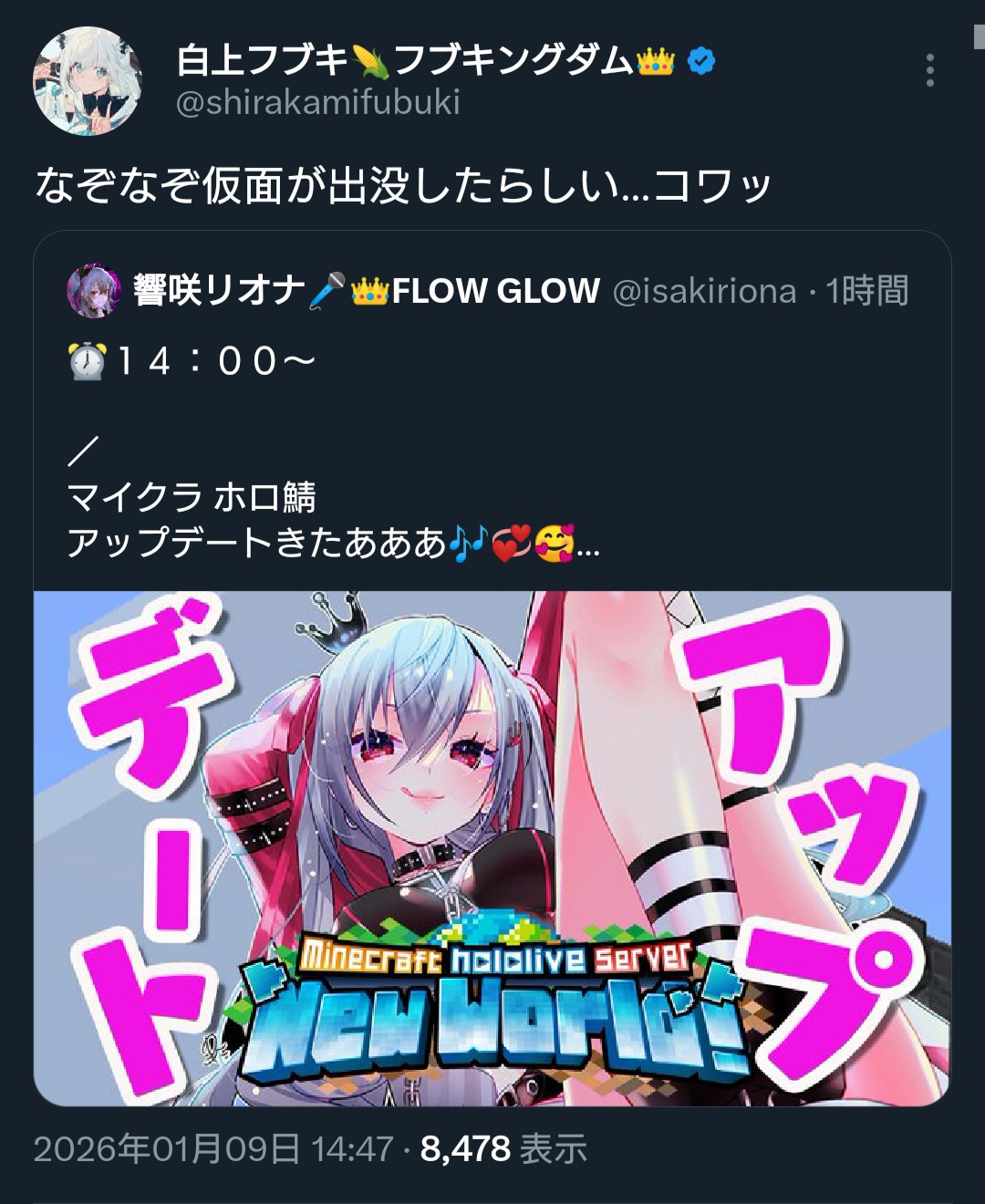 | … | 999無題Name名無し 26/01/09(金)19:19:53 IP:133.114.*(nuro.jp)No.11349248+こよの悲鳴で耳ないなった |