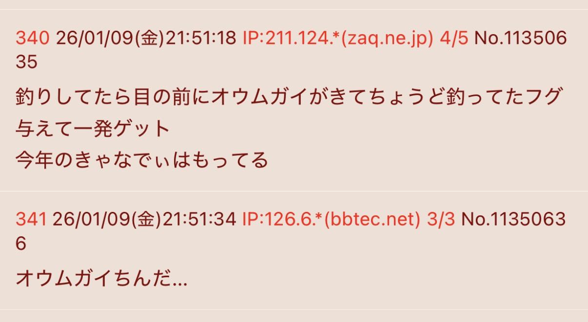 | … | 909無題Name名無し 26/01/09(金)22:40:05 IP:153.218.*(ocn.ne.jp)No.11351225+地獄耳のおっさん |