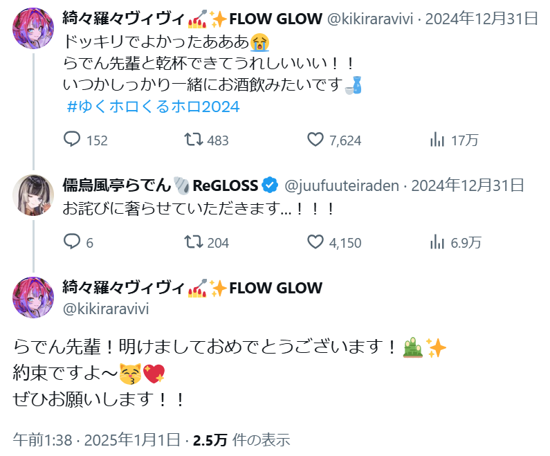| … | 27無題Name名無し 26/01/20(火)21:28:01 IP:133.206.*(mesh.ad.jp)No.11408775そうだねx1 1768912081572.png-(138304 B) 何気にヴィヴィらでんの絡みって新鮮だなドッキリか何かで絡んでたくらいか…と思って調べたら |
