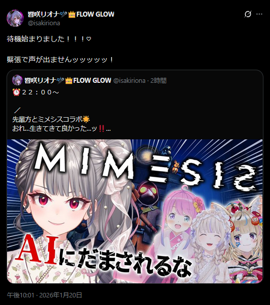 | … | 71無題Name名無し 26/01/20(火)21:31:17 IP:133.200.*(mesh.ad.jp)No.11408819+現時刻におけるりおーなの心境を推察 |
