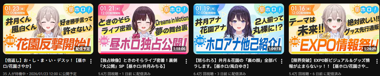 | … | 12無題Name名無し 26/01/22(木)22:58:28 IP:220.220.*(plala.or.jp)No.11418348+スバルホロメンの配信タグにほぼ「ホロライブ」って単語が入る事に気付かず |