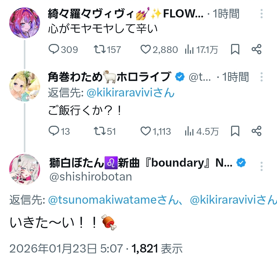 | … | 916無題Name名無し 26/01/23(金)18:15:33 IP:133.206.*(mesh.ad.jp)No.11419413+ 1769159733867.jpg-(224999 B) はねホロにも同意が侵食してきている… |