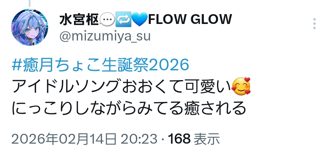 | … | 933無題Name名無し 26/02/14(土)20:24:46 IP:106.159.*(dion.ne.jp)No.11530289+>ライブの途中ですがここでふーみマッマよりバレンタインわためぇです |