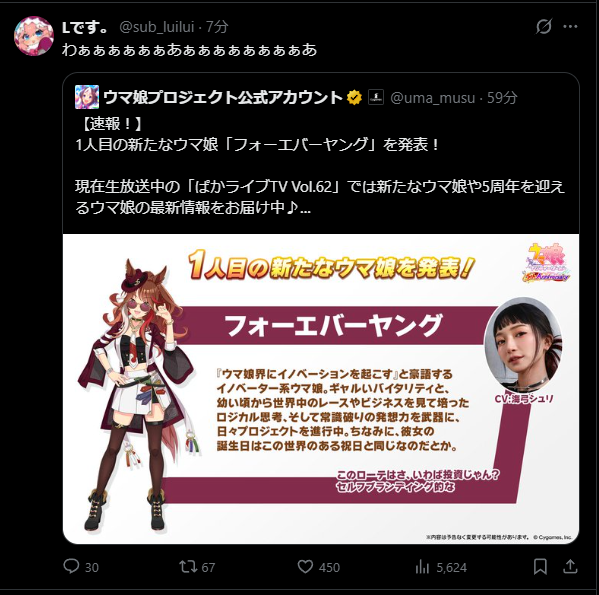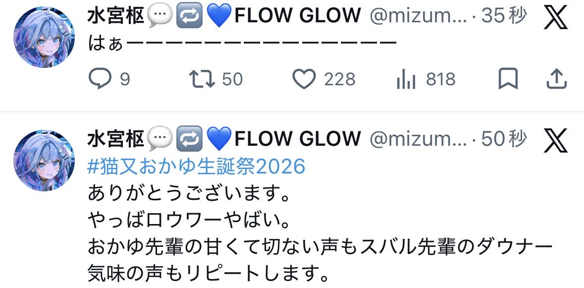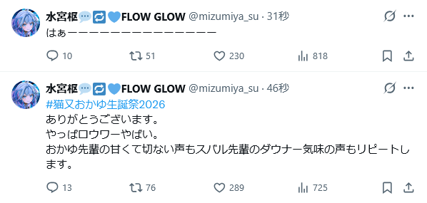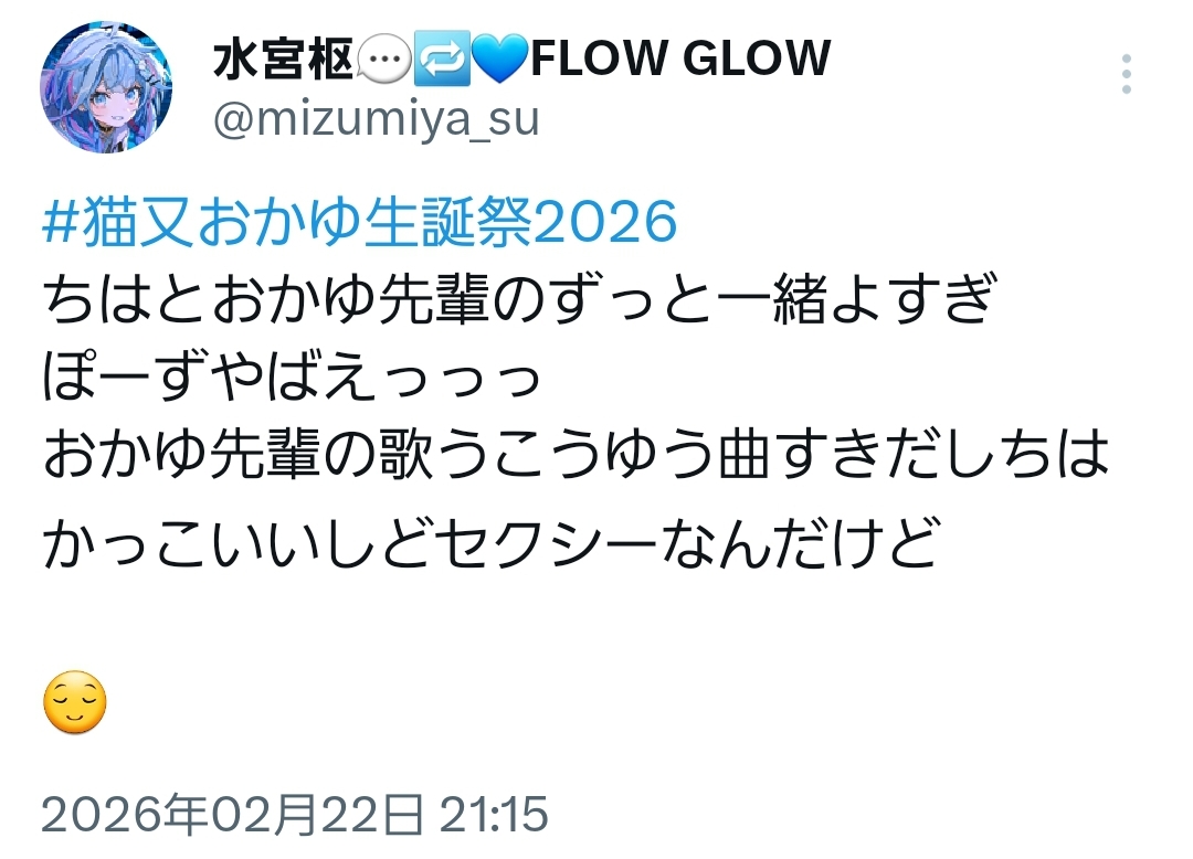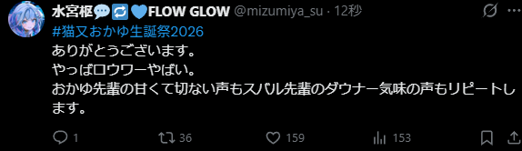 | … | 925無題Name名無し 26/02/22(日)21:34:02 IP:59.132.*(au-net.ne.jp)No.11572949そうだねx2改めて思うけどスバルもだいぶ曲だと別人になる組みだよな⋯ |