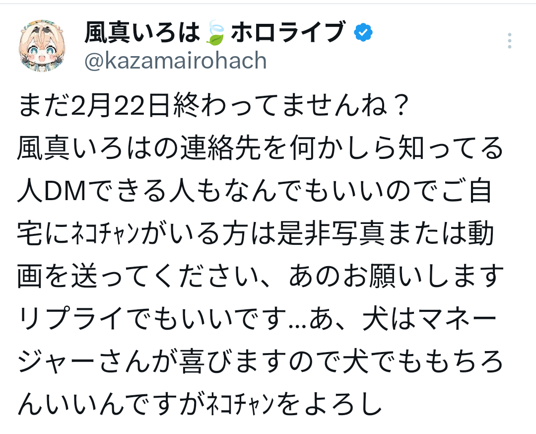 | … | 45無題Name名無し 26/02/22(日)20:49:18 IP:60.87.*(ipv4)No.11572063+ホロメンのペットで誰が一番可愛いか決めよう |