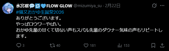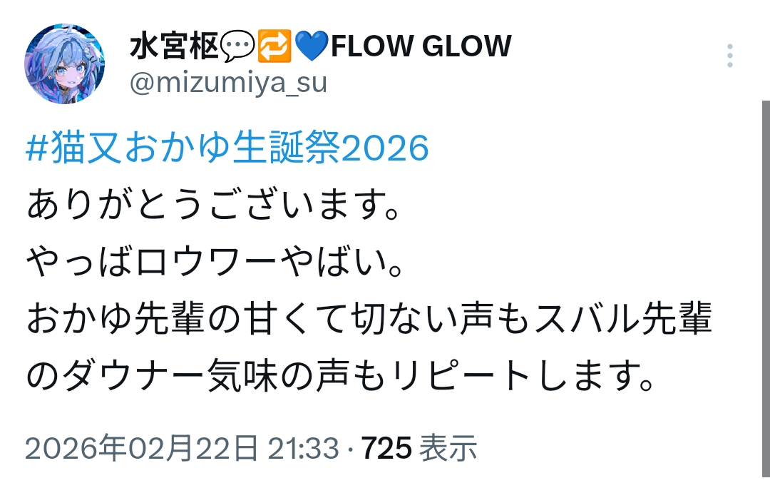 | … | 924無題Name名無し 26/02/22(日)21:34:02 IP:1.75.*(spmode.ne.jp)No.11572948+スバルの周年ライブがより楽しみにったわ |