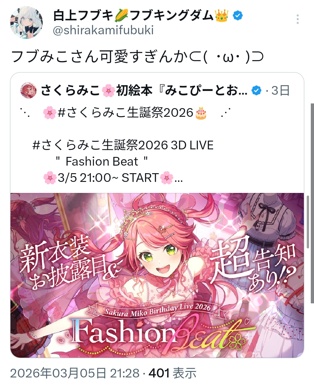 | … | 909無題Name名無し 26/03/05(木)21:48:29 IP:222.228.*(gmo-isp.jp)No.11626178+こうして見るとみこちマジで衣装多いな |