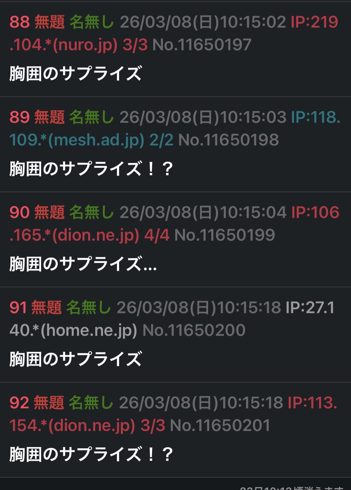 | … | 93無題Name名無し 26/03/08(日)10:15:25 IP:59.132.*(au-net.ne.jp)No.11650202+もう!? |
