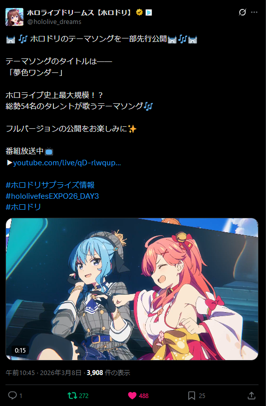 | … | 46無題Name名無し 26/03/08(日)10:07:20 IP:123.225.*(ocn.ne.jp)No.11650152+ライブ後の特報かと思ったけど |