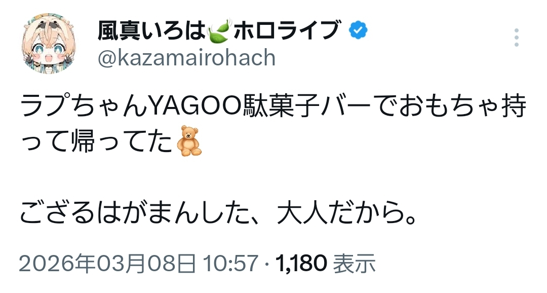 | … | 991無題Name名無し 26/03/08(日)12:18:05 IP:111.169.*(mesh.ad.jp)No.11651151+ラプちゃんは歌って踊れるちいかわみたいな存在だから |