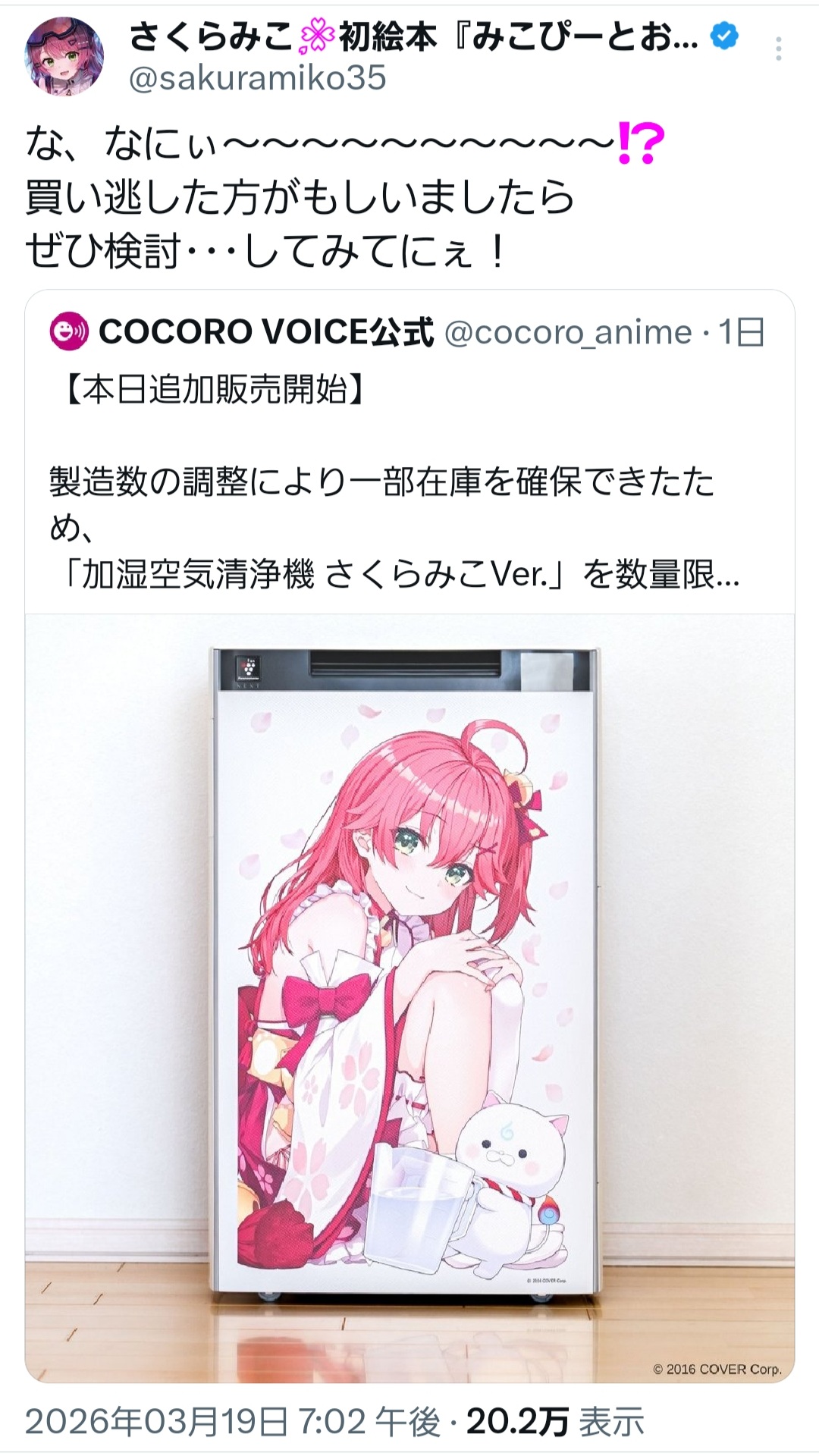 | … | 44無題Name名無し 26/03/21(土)00:04:17 IP:175.177.*(netyou.jp)No.11720652そうだねx22https://cover-corp.com/news/detail/c2026031901 |
