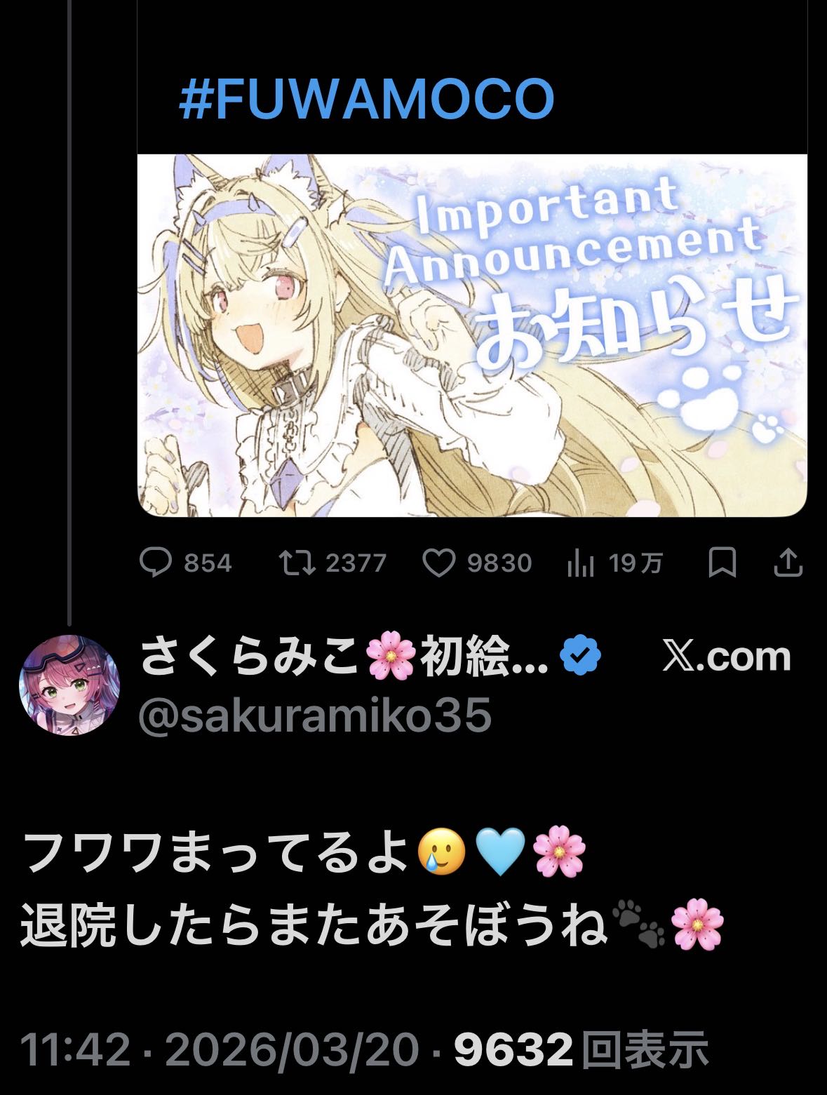 | … | 231無題Name名無し 26/03/31(火)20:16:14 IP:60.105.*(bbtec.net)No.11785405そうだねx1みこち1ヶ月か…ゆっくり休め…ホロメン働きすぎだからな… |