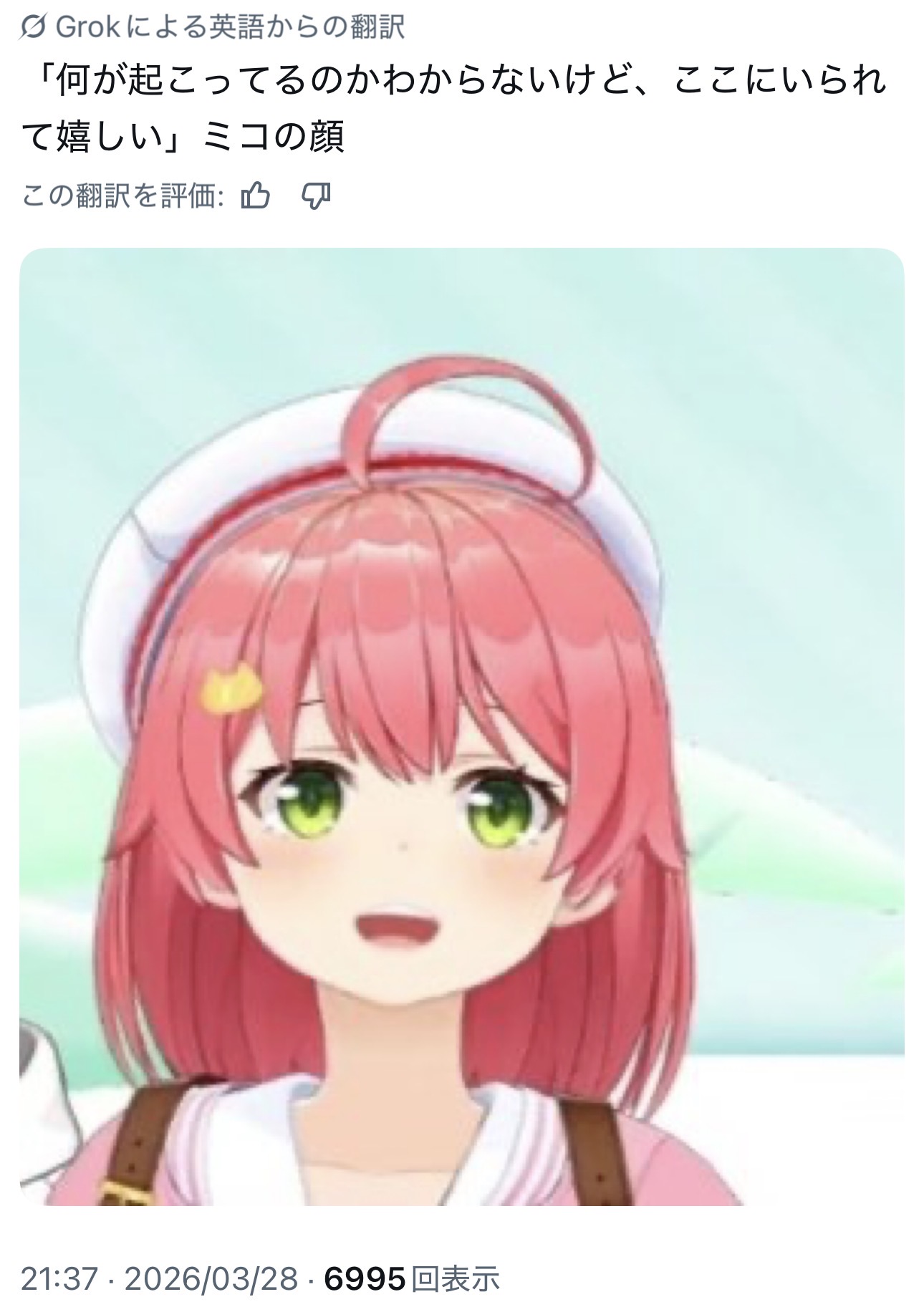 | … | 170無題Name名無し 26/03/27(金)10:15:11 IP:114.158.*(ocn.ne.jp)No.11755998+みこちがえっちな配信者だと思われちまう! |