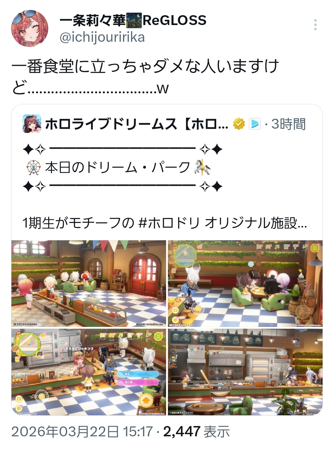| … | 50無題Name名無し 26/03/22(日)14:45:14 IP:180.49.*(ocn.ne.jp)No.11730859+カラオケはないけどダンスはあるロスジャ |