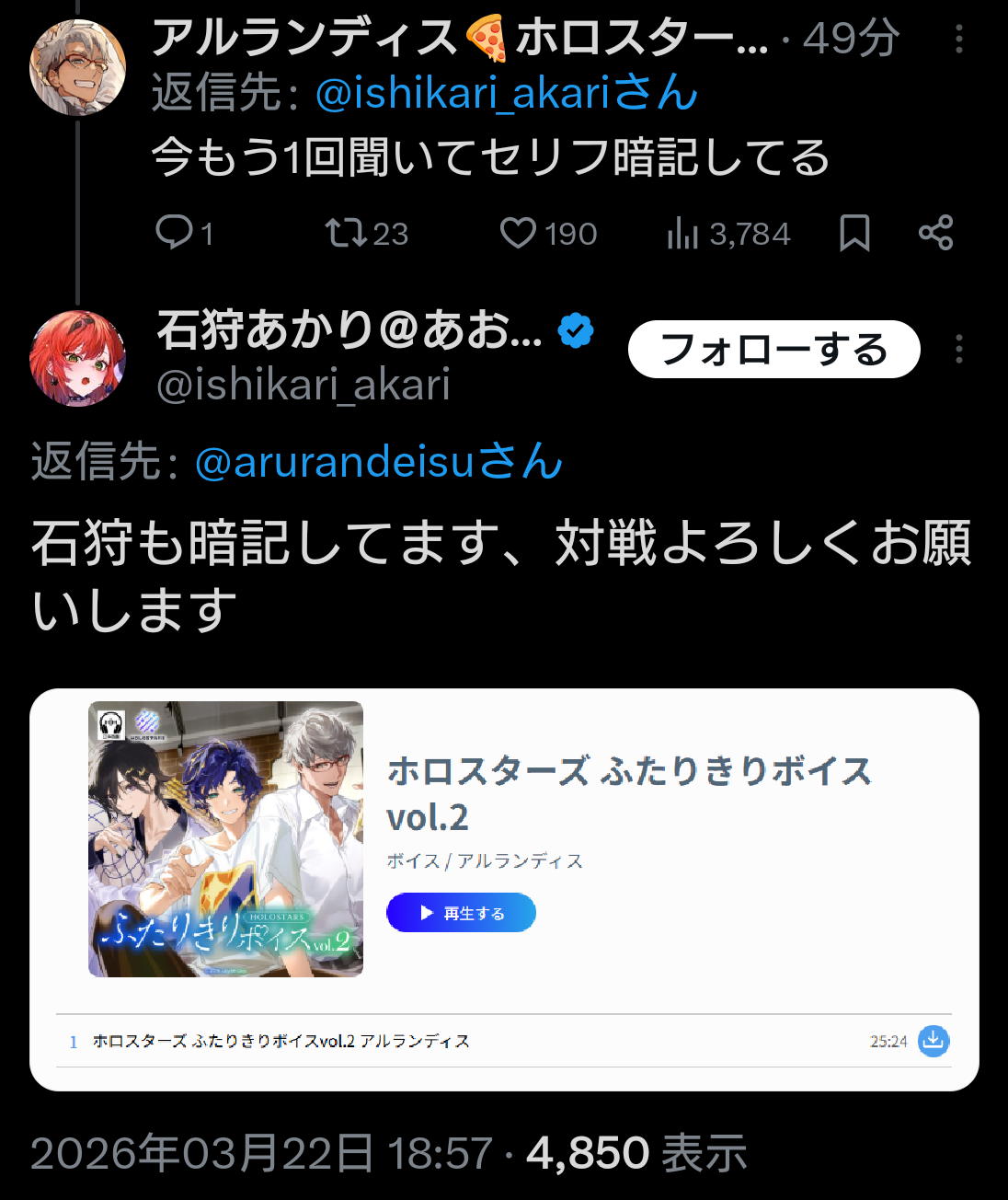 | … | 14無題Name名無し 26/03/22(日)17:46:50 IP:210.251.*(medias.ne.jp)No.11731866+スバルもう次枠立ててるけど収録したやつかな |