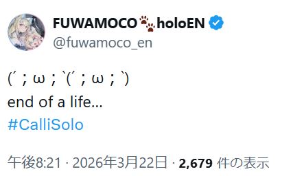 | … | 23無題Name名無し 26/03/22(日)17:51:46 IP:124.36.*(ucom.ne.jp)No.11731875+フワワの配信が終わった |