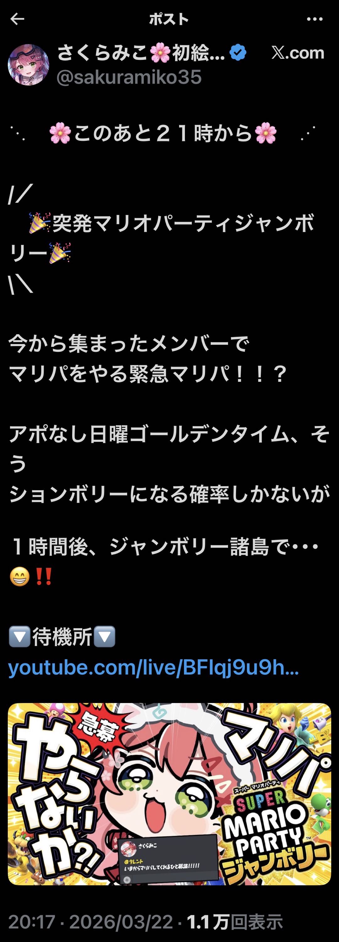 | … | 8無題Name名無し 26/03/22(日)17:39:04 IP:116.65.*(home.ne.jp)No.11731860そうだねx5 1774168744353.webp-(86136 B) 19:00森さんのライブ |