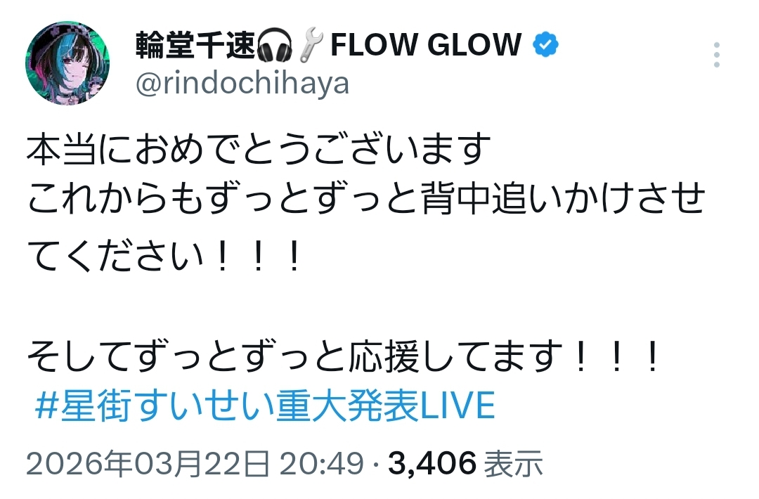 | … | 77無題Name名無し 26/03/22(日)20:52:49 IP:160.249.*(spmode.ne.jp)No.11733996+そういえば生誕ライブだったわ |