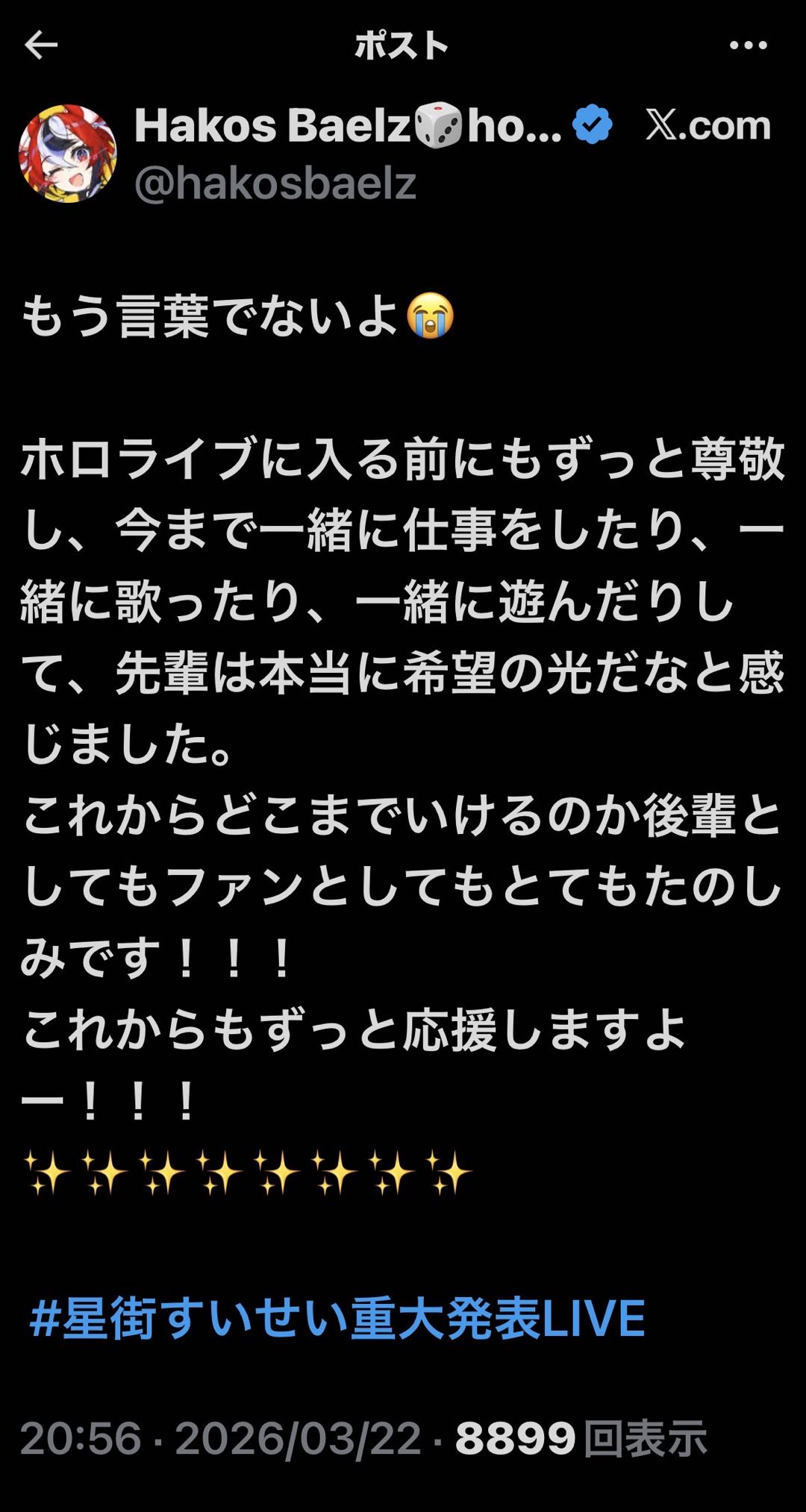 | … | 48無題Name名無し 26/03/22(日)20:52:14 IP:106.73.*(enabler.ne.jp)No.11733967+すいちゃんがXって言った! |