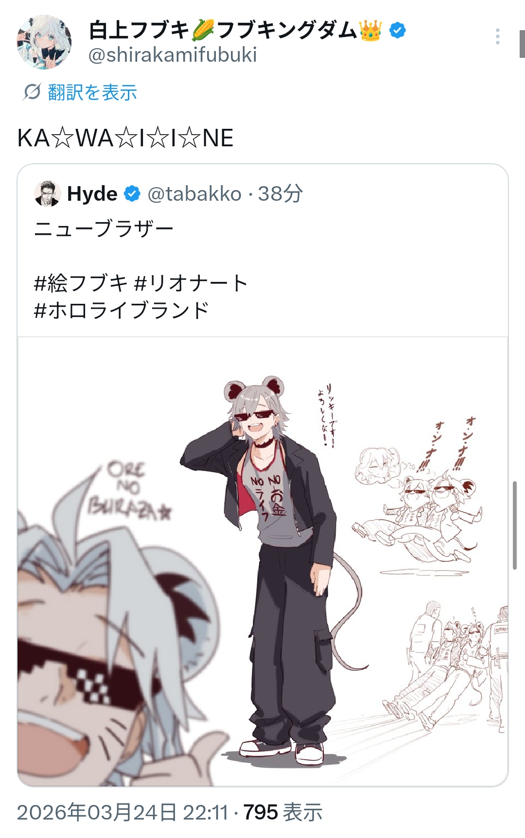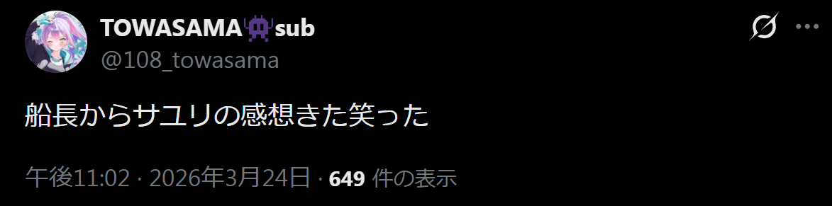 | … | 981無題Name名無し 26/03/24(火)23:15:51 IP:126.4.*(bbtec.net)No.11746094+自分で踊らなくても踊らせられるVtuberにダンス特技が活かせるって結構ホロライブならではよな |
