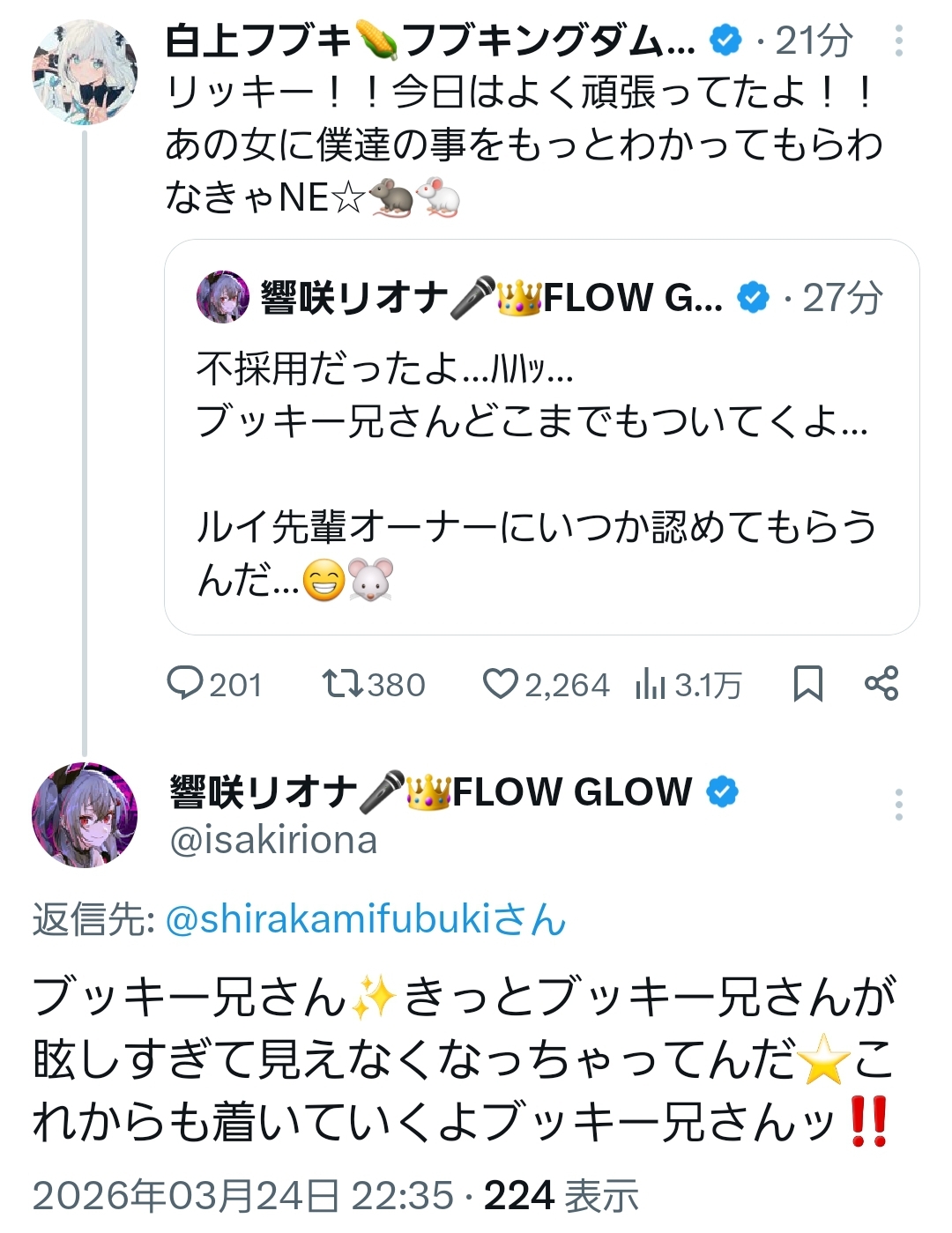 | … | 970無題Name名無し 26/03/24(火)23:14:35 IP:111.169.*(mesh.ad.jp)No.11746083+今のホロオーディションの採用基準ガチで難しいよなぁって |