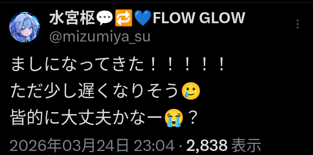 | … | 944無題Name名無し 26/03/24(火)23:12:35 IP:153.134.*(ocn.ne.jp)No.11746055そうだねx1>みこちは悩み相談をやるとお姉さんになるよな |