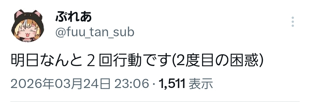 | … | 919無題Name名無し 26/03/24(火)23:10:39 IP:49.129.*(mesh.ad.jp)No.11746029+ 1774361439666.jpg-(98804 B) ふーたん2回行動です |