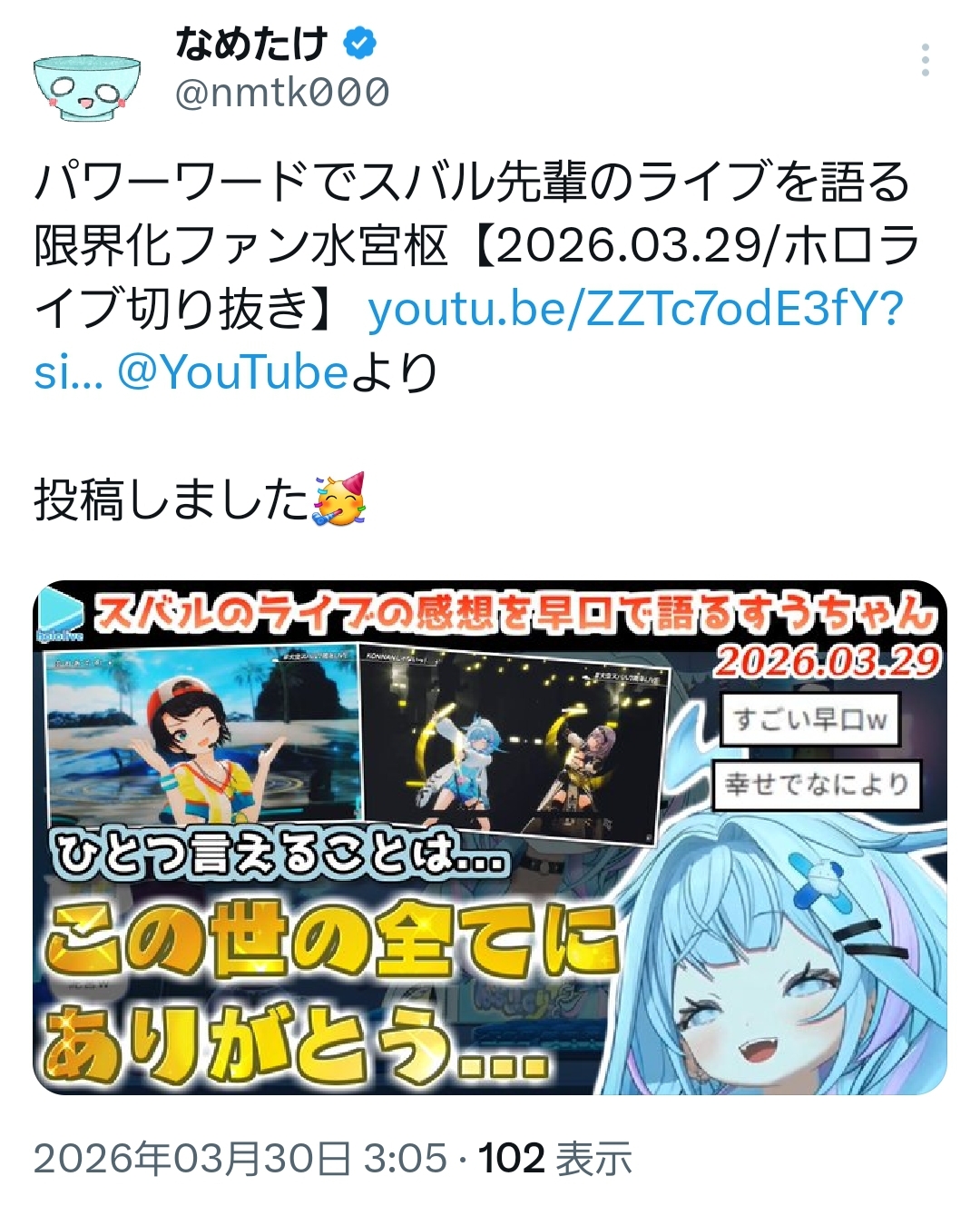 | … | 71無題Name名無し 26/03/29(日)23:58:57 IP:202.7.*(megaegg.ne.jp)No.11778449+すうちゃん? |