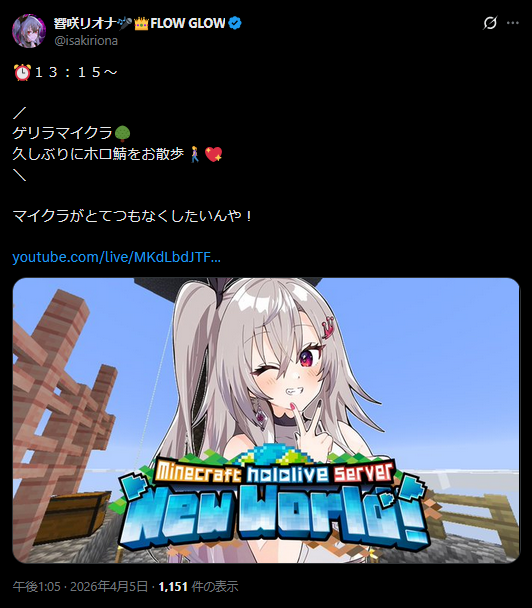 | … | 902無題Name名無し 26/04/05(日)13:07:57 IP:60.98.*(bbtec.net)No.11820856そうだねx6 1775362077526.png-(299080 B) りおーなゲリラマイクラです |