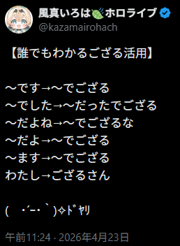 | … | 978無題Name名無し 26/04/23(木)19:49:36 IP:133.209.*(mesh.ad.jp)No.11907707+ござるさん今日もスタジオか |