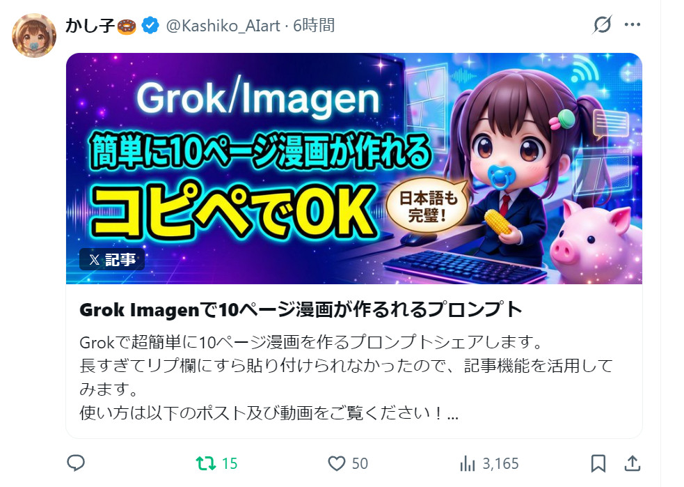 | … | 40無題Name名無し 26/04/04(土)16:28:49No.159510+ 1775287729563.jpg-(202821 B) Grok Imagenで10ページ漫画が作るれるプロンプト |