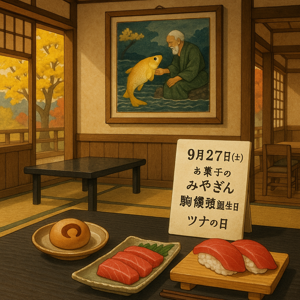 … | 397季節変わりはお大事にName名無し 25/10/10(金)08:47:14 ID:IMxz/Q.cNo.142647そうだねx3 1760053634052.png-(2769171 B) ![]() 鯛の日 (Sea Bream Day) まぐろの日 (Tuna Day) |