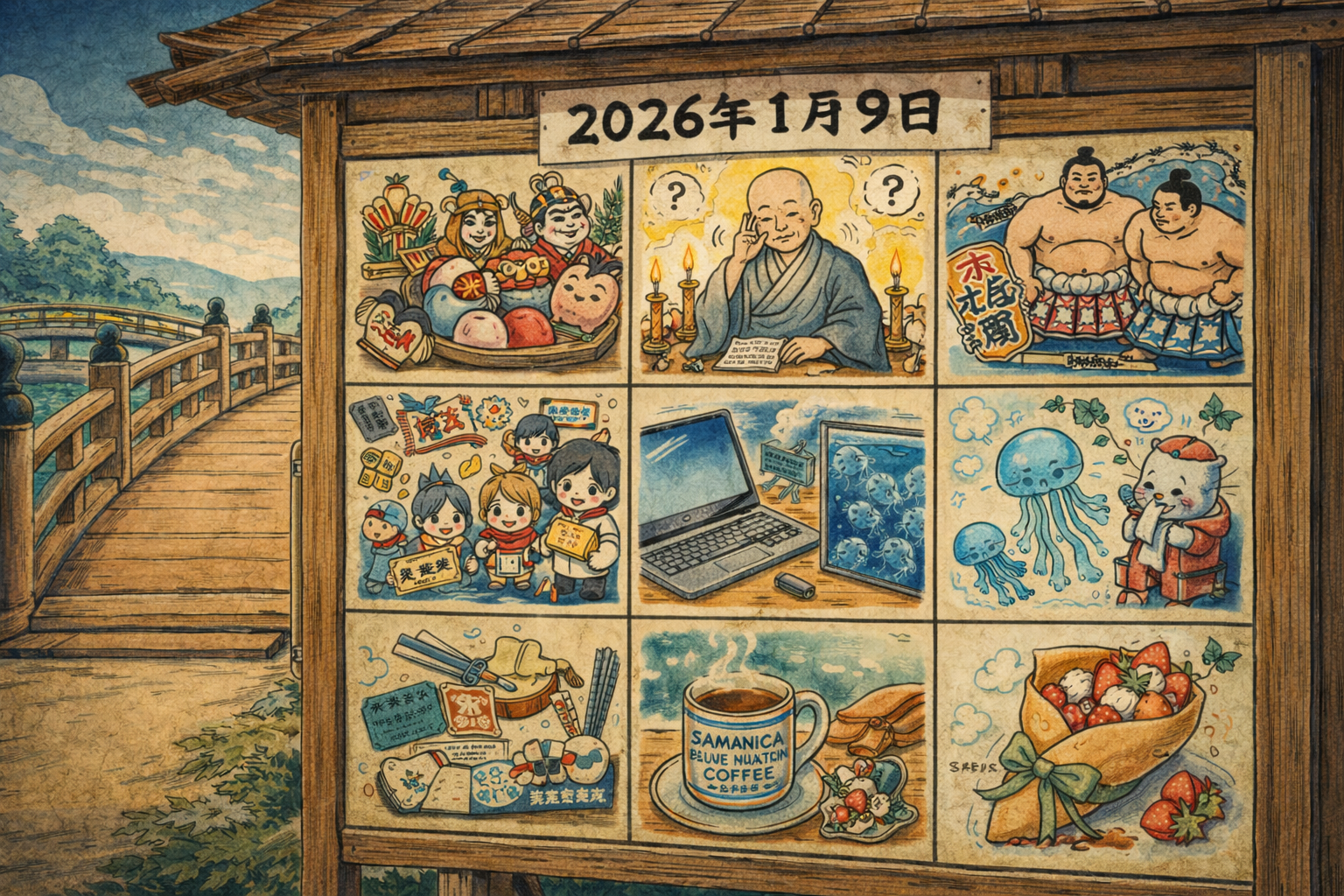 | … | 1607記念日 2026年1月15日 ただのネタ用 日付縛りとかないです(翻訳は ChatGPT)Name名無し 26/01/15(木)08:08:37 ID:IMxz/Q.cNo.153260そうだねx4 1768432117276.png-(2909008 B) 小正月、女正月 (Little New Year, Women's New Year, Namahage, Amamehagi, Kamakura snow huts) |
