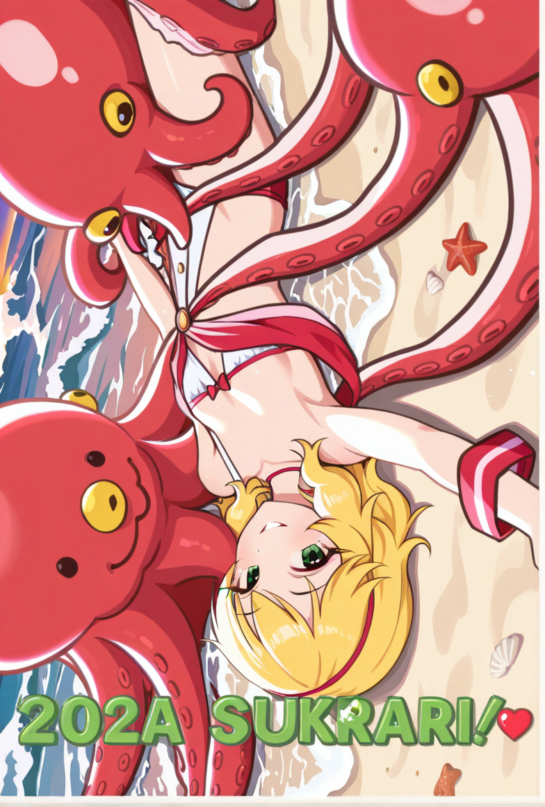 … | 18無題Name名無し 25/10/09(木)08:45:22No.142508そうだねx1 1759967122351.webp-(982946 B) ![]() そこで「参考画像の構図、人物、衣装、ポージングを変えずにアニメ風に塗りなおして下さい。赤い生き物はタコです。人物は「アイドルマスターシンデレラガールズ」の「櫻井桃華」です。背景は砂浜の波打ち際です。 |