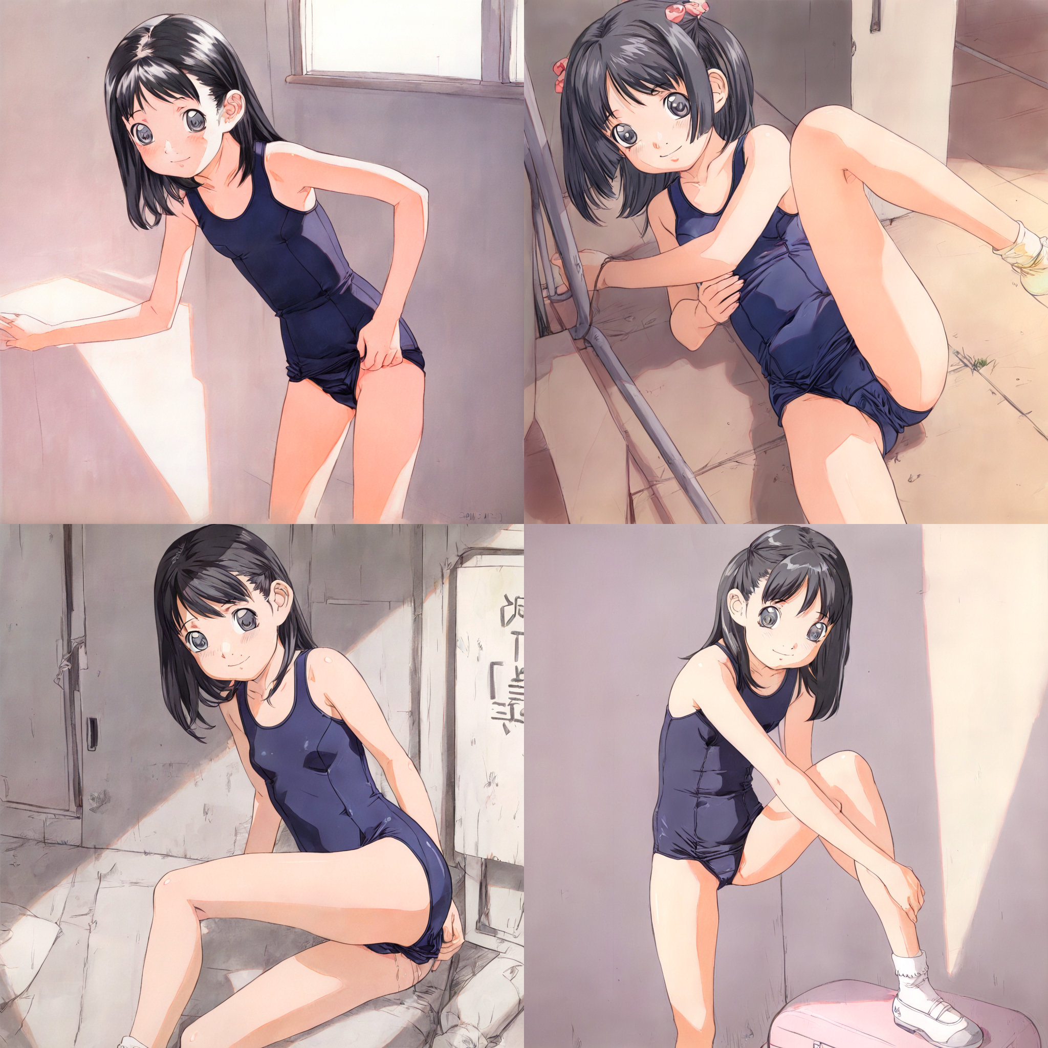 <lora:1>, best_quality, loli, 1girl, solo, school_swimsuit, black_hair, anime