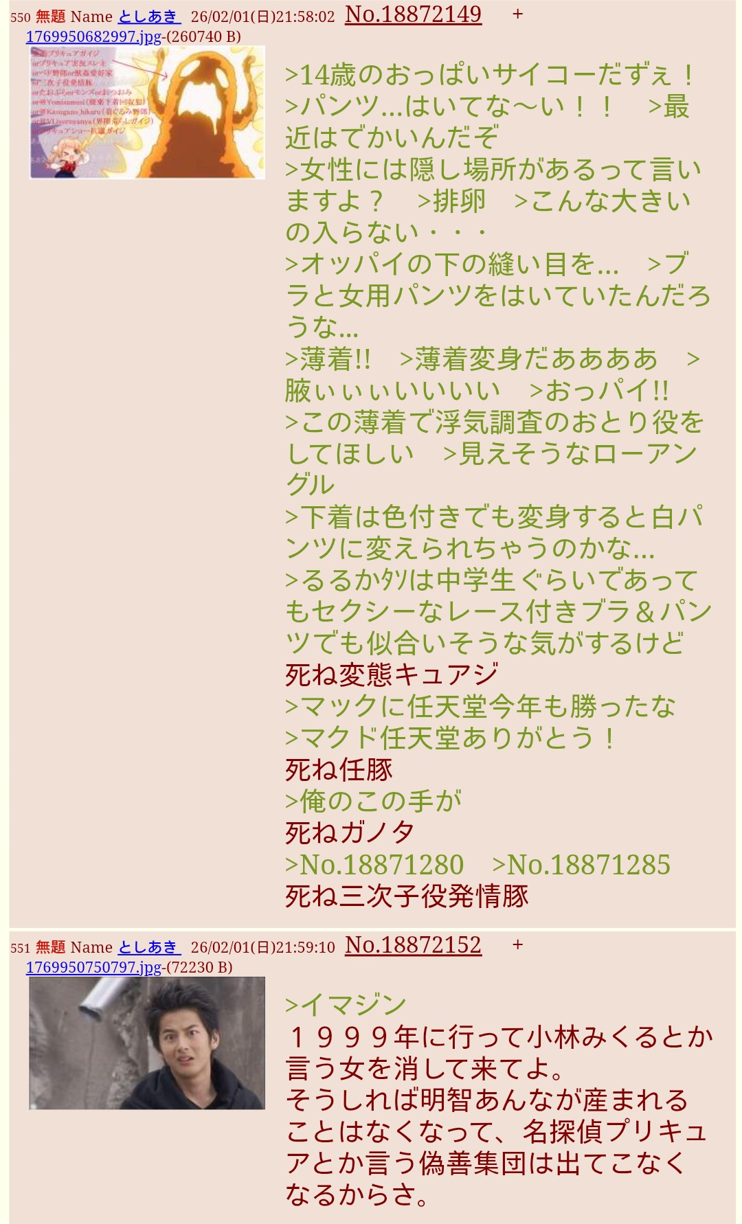 | … | 35無題Nameとしあき 26/02/02(月)16:20:33No.18872734そうだねx3只今、キミプリ最終回に荒らしが出ましたので消しました |