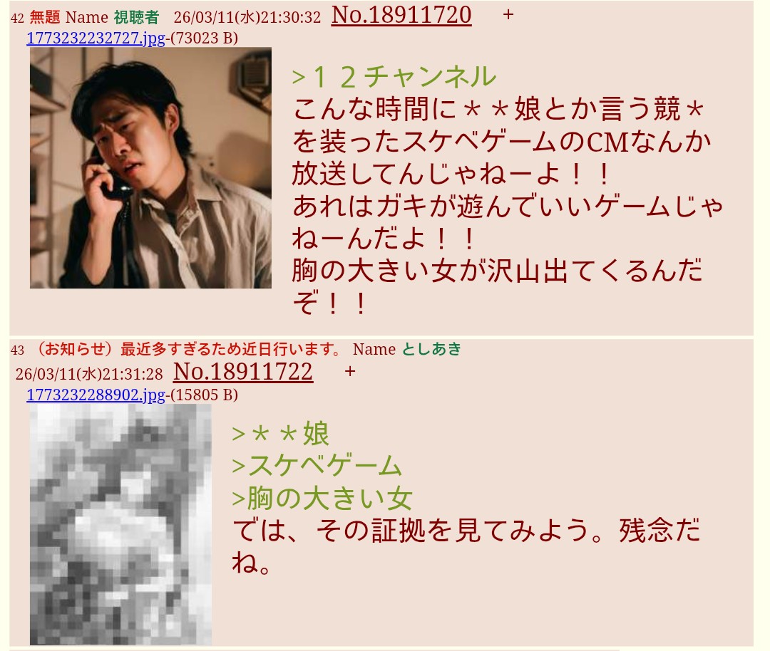 | … | 58無題Nameとしあき 26/03/17(火)00:26:55No.18917993+平和な提供..... |
