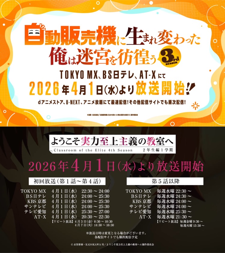 22:30〜ようこそ実力至上主義の教室へ 4th Season 2年生編1学期[新]