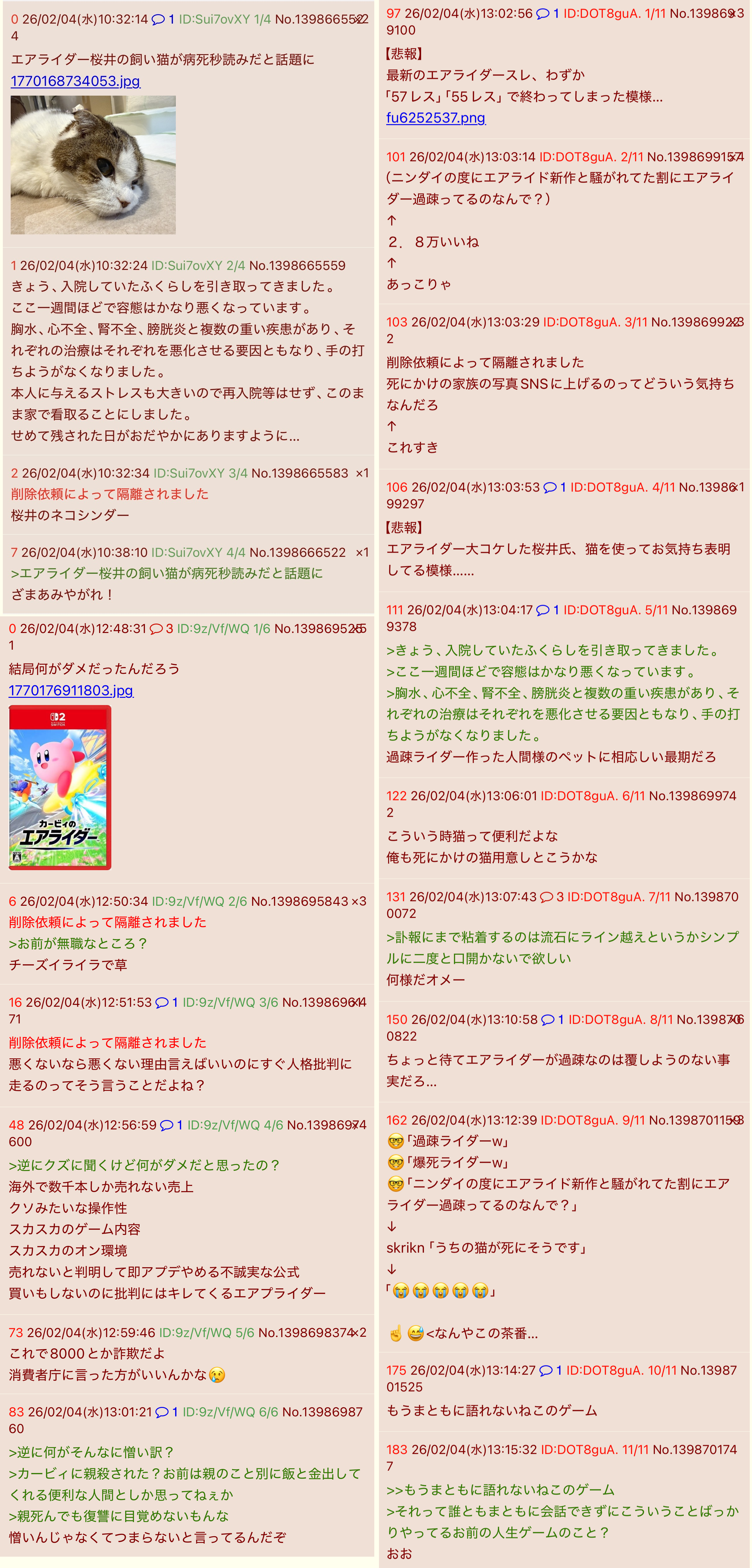 | deleted | 4 | 138 | 26/02/04(水)20:15 | |