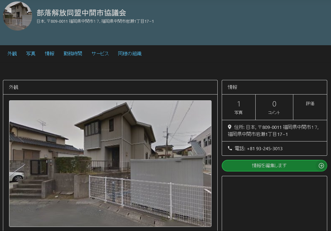 | D | f308944.png | 異次元部落隣保館 Googleマップで市の人権センターの住所を使って背乗り 写真は一般住宅 | 1019 | 26/03/02(月)02:28 |